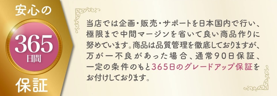 365日のグレードアップ保証、不良があった場合の90日保証に対応しております。